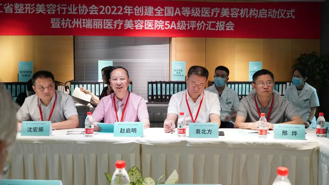 受國家衛(wèi)健委委託,根據(jù)中國整形美容協(xié)會(huì)在全國範(fàn)圍部署醫(yī)療美容機(jī)構(gòu)評(píng)價(jià)工作的計(jì)畫要求,2022年浙江省醫(yī)療美容機(jī)構(gòu)A等級(jí)評(píng)價(jià)工作在全省範(fàn)圍開展。8月27日下午,浙江省醫(yī)療美容機(jī)構(gòu)A等級(jí)評(píng)價(jià)工作省級(jí)初評(píng)啟動(dòng)會(huì)在杭州瑞麗醫(yī)療美容醫(yī)院舉辦。浙江省整形美容行業(yè)協(xié)會(huì)會(huì)長(zhǎng)趙啟明,浙江省衛(wèi)健委綜合監(jiān)督局四級(jí)調(diào)研員沈宏振、杭州市衛(wèi)健委醫(yī)政醫(yī)管處處長(zhǎng)袁北方、杭州市衛(wèi)健綜合行政執(zhí)法隊(duì)醫(yī)療科科長(zhǎng)邢燁;浙江省醫(yī)療美容機(jī)構(gòu)評(píng)價(jià)專家組:杭州市上城區(qū)衛(wèi)健局副局長(zhǎng)方秋萍、浙江大學(xué)醫(yī)學(xué)院附屬邵逸夫醫(yī)院整形外科李華主任、溫州醫(yī)科大學(xué)附屬第一醫(yī)院整形外科鄭君達(dá)主任、杭州市感染質(zhì)控中心專家楊梅;浙江省整形美容行業(yè)協(xié)會(huì)高級(jí)顧問、全國醫(yī)美資深專家馬奇教授,浙江省整形美容行業(yè)協(xié)會(huì)秘書長(zhǎng)李自明、副秘書長(zhǎng)劉英;瑞麗醫(yī)美集團(tuán)副總裁戎浩天、瑞麗醫(yī)美集團(tuán)總院長(zhǎng)宋建良、杭州瑞麗醫(yī)療美容醫(yī)院總經(jīng)理徐建清、杭州瑞麗醫(yī)療美容醫(yī)院醫(yī)療院長(zhǎng)閔密克等參會(huì)。