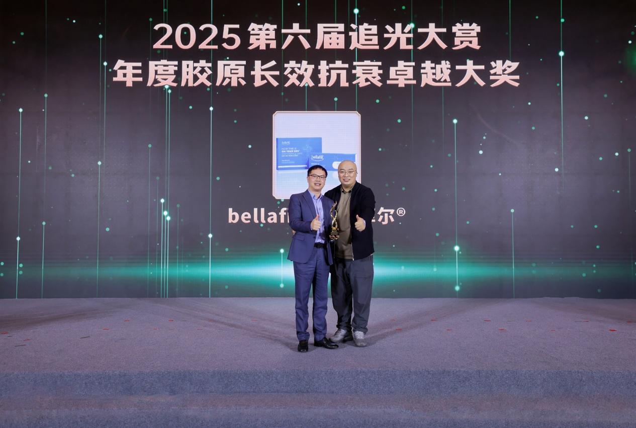 12月3日,由醫(yī)美行業(yè)觀察主辦以”新世界·精耕增長"為主題的2025第六屆未來醫(yī)美大會暨追光大賞頒獎盛典,於上海隆重舉行。Bellafill貝麗菲爾憑藉前瞻性的再生理念與卓越的抗衰療效,在眾多產(chǎn)品中脫穎而出,榮獲“年度膠原長效抗衰卓越大獎”。